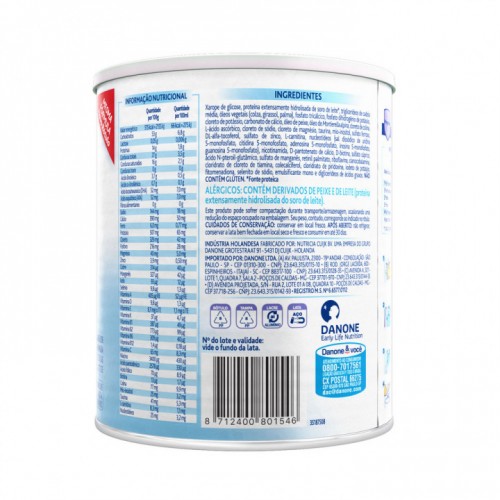 Fórmula infantil para lactentes e de seguimento para lactantes e crianças de primeira infância destinada a necessidades dietoterápicas específicas com proteína extensamente hidrolisada e com restrição de lactose. Com DHA e ARA, e Nucleotídeos.