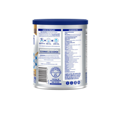 CONTÉM LACTOSE. NÃO CONTÉM GLÚTEN. ALÉRGICOS:CONTÉM LEITE E DERIVADOS DE LEITE,DE PEIXE, DE SOJA E DE OVO. ESTE PRODUTO NÃO É LEITE EM PÓ.